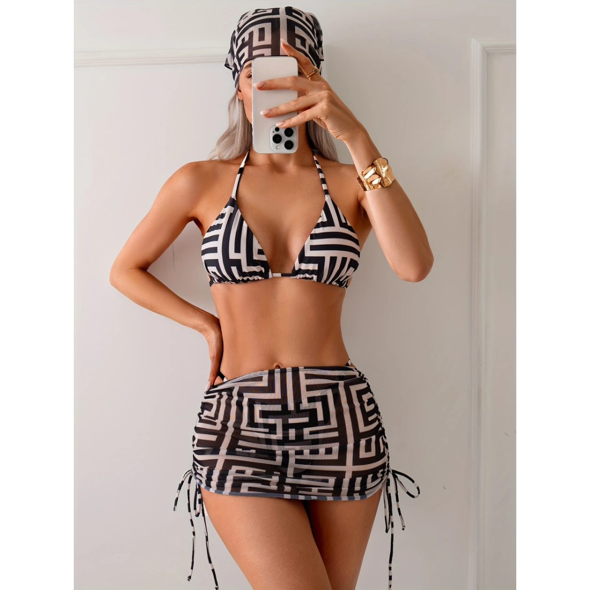 Купальник жіночий роздільний зі спідницею та банданою