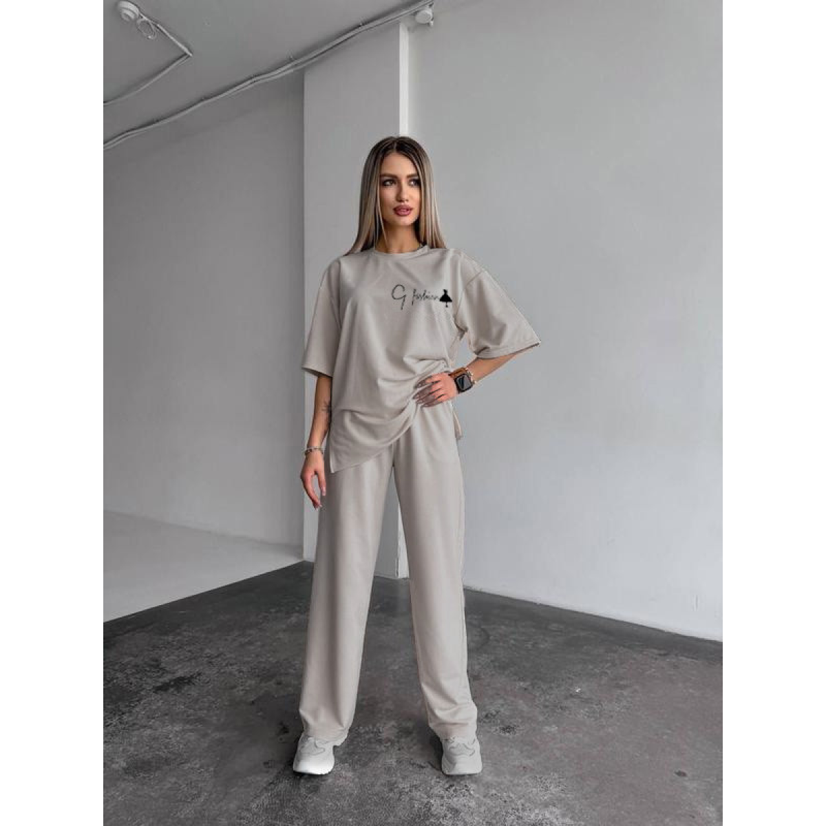 Стильний костюм-двійка з якісної турецької тканини двунить, футболка вільного крою (можна з накаткою або без) і прямі штани з кишенями. Турецька двунить — багатофункціональна тканина, приємна до тіла, довговічна і невибаглива у догляді. Матерія відмінно тримає форму, здатна з легкістю приховати недоліки фігури та підкреслити її переваги. Тканина: турецька двунить Розміри: 42/44 - футболка ОГ 110 см, довжина 65 см, штани ОС 100 см, ОТ 60 см, довжина 103 см 46/48 - футболка ОГ 118 см, довжина 67 см, штани ОС 106 см, ОТ 65 см, довжина 104 см 50/52 - футболка ОГ 124 см, довжина 70 см, штани ОС 112 см, ОТ 70 см, довжина 105 см