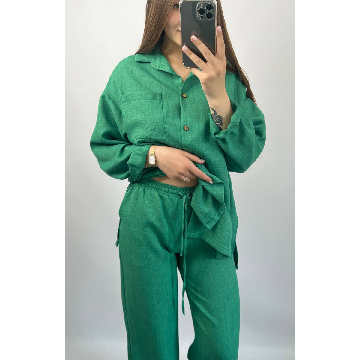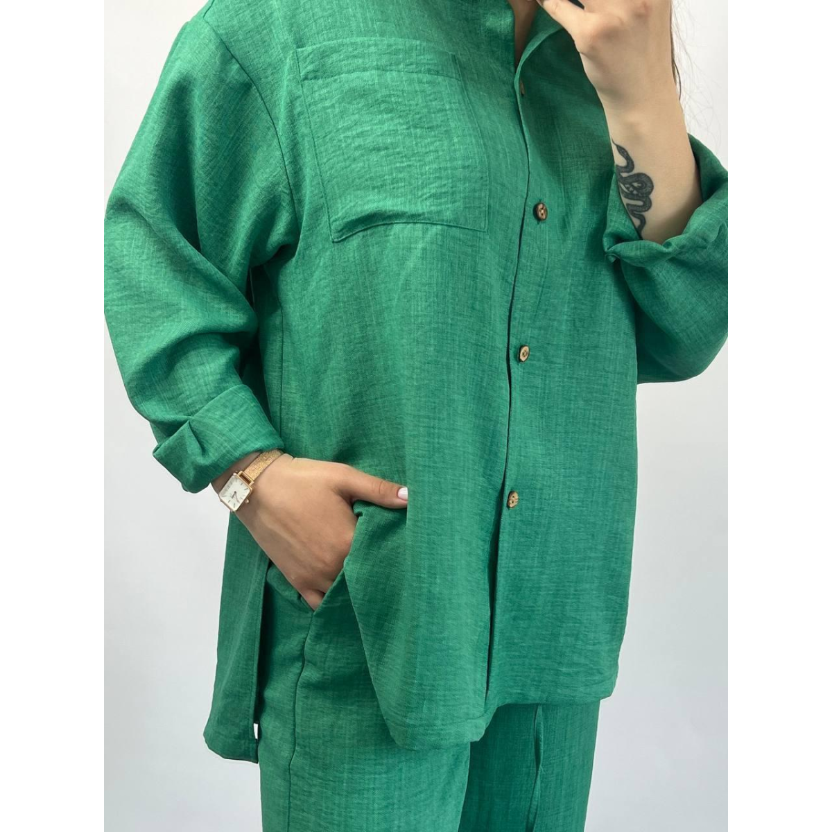 Костюм жіночий літній льон Зелений, 46/48