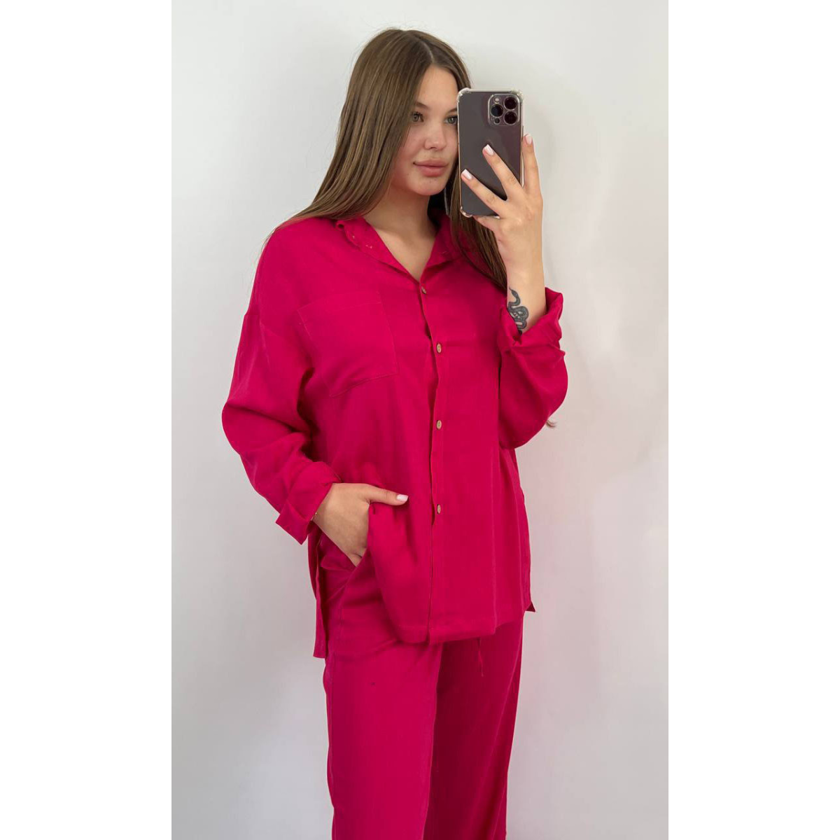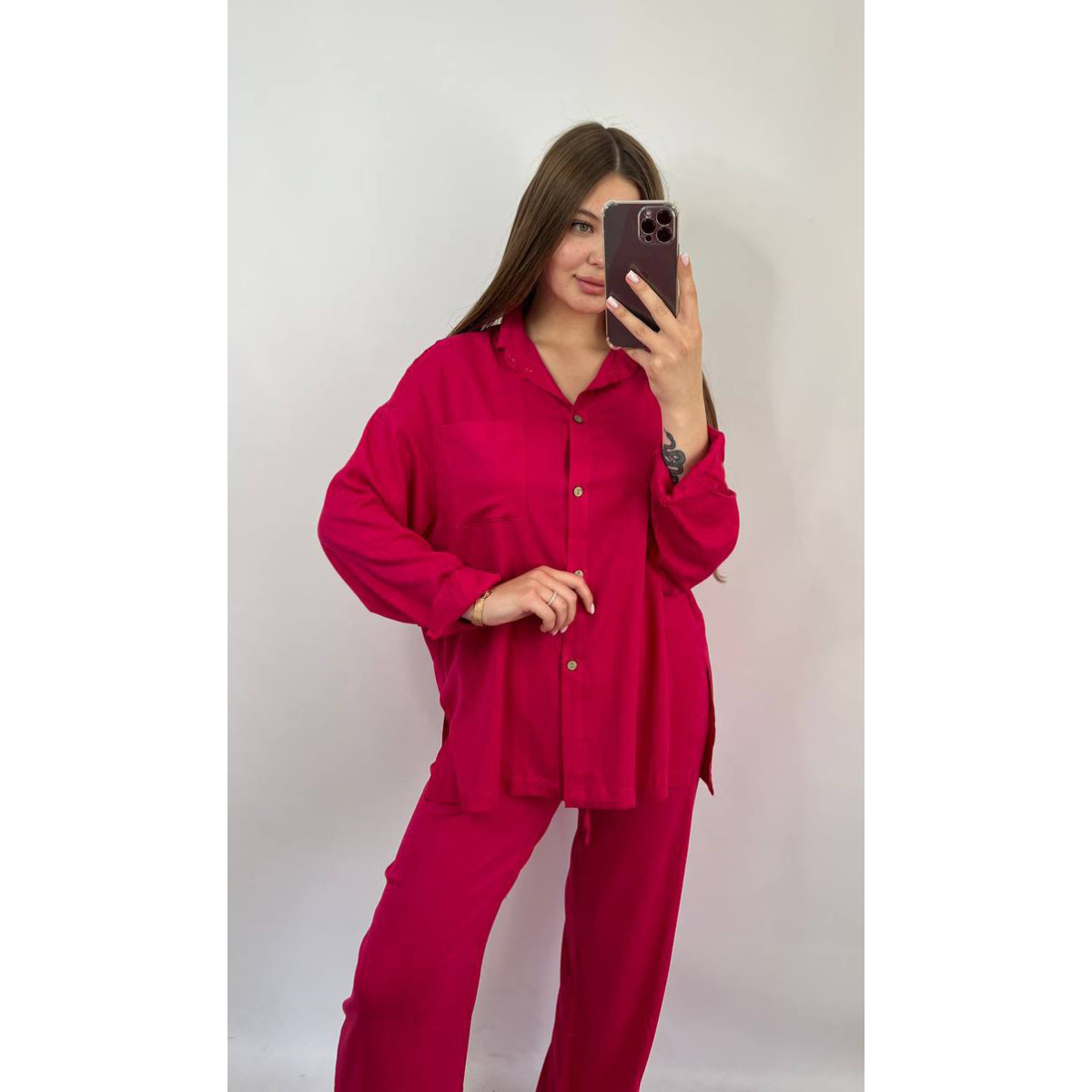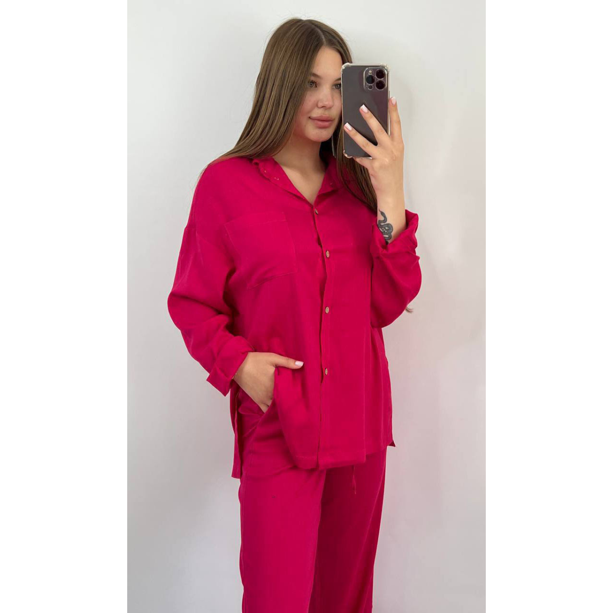 Костюм жіночий літній льон Малиновий, 50/52
