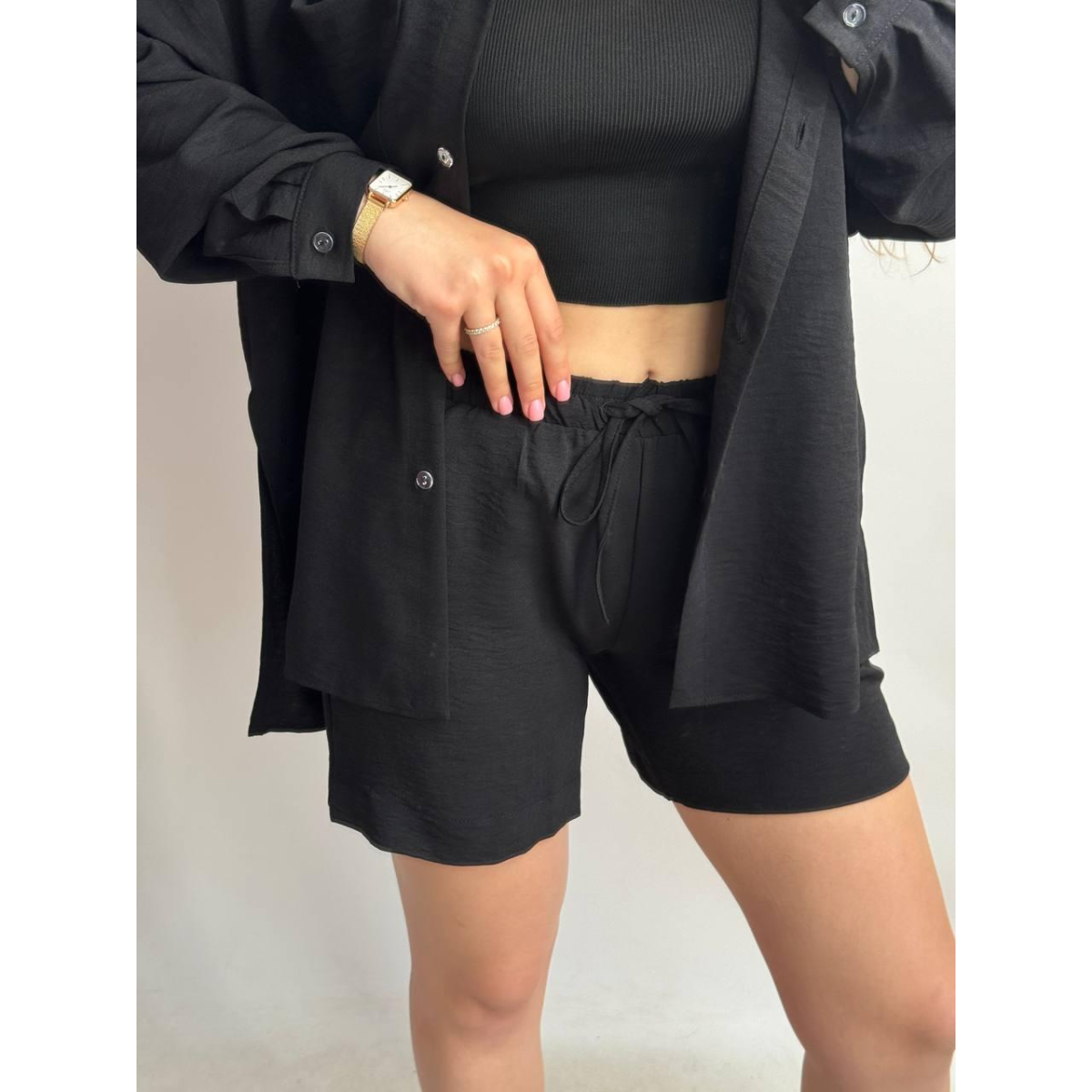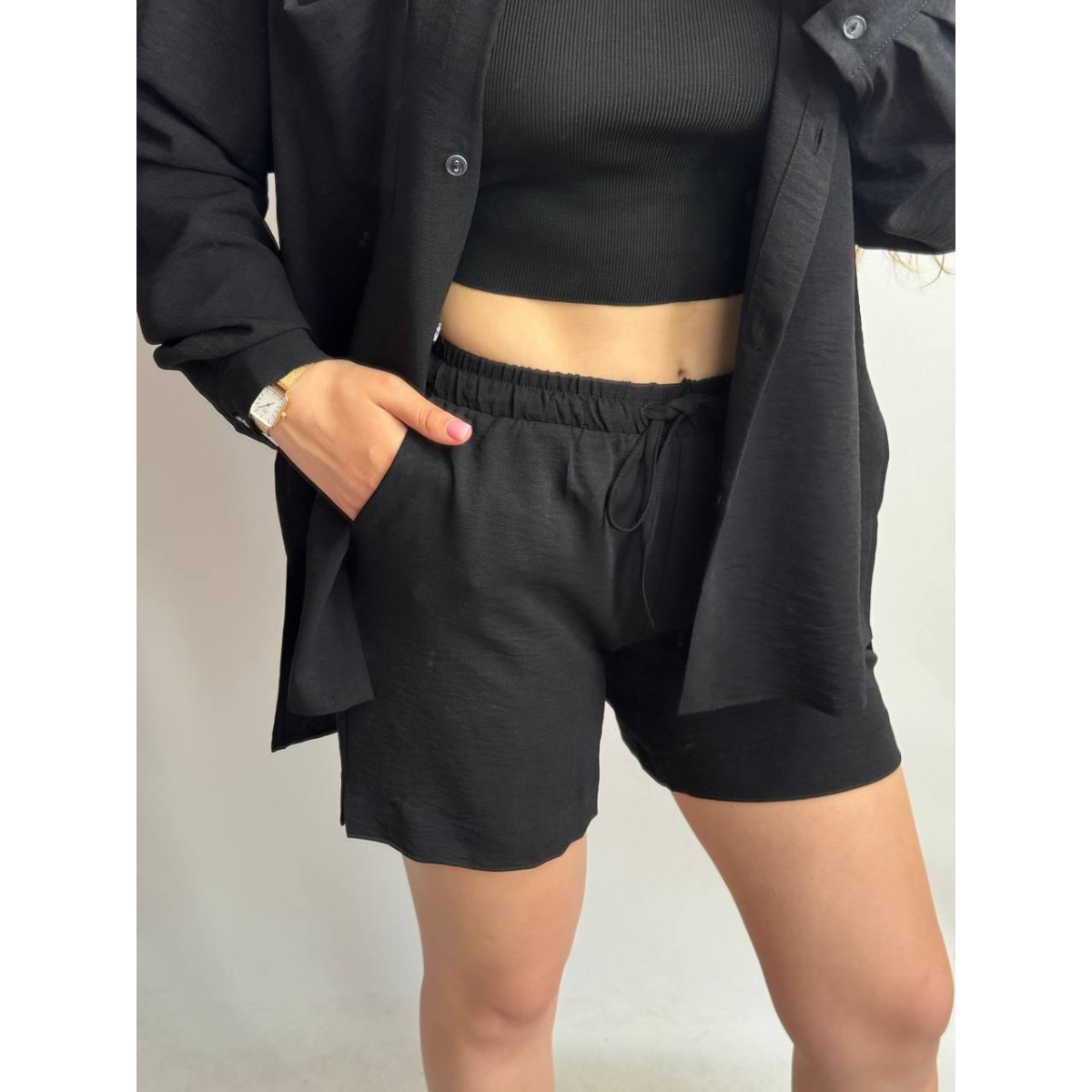 Костюм-трійка жіночий літній з шортами і брюками Чорний, XS-S