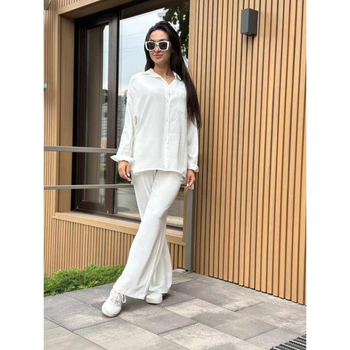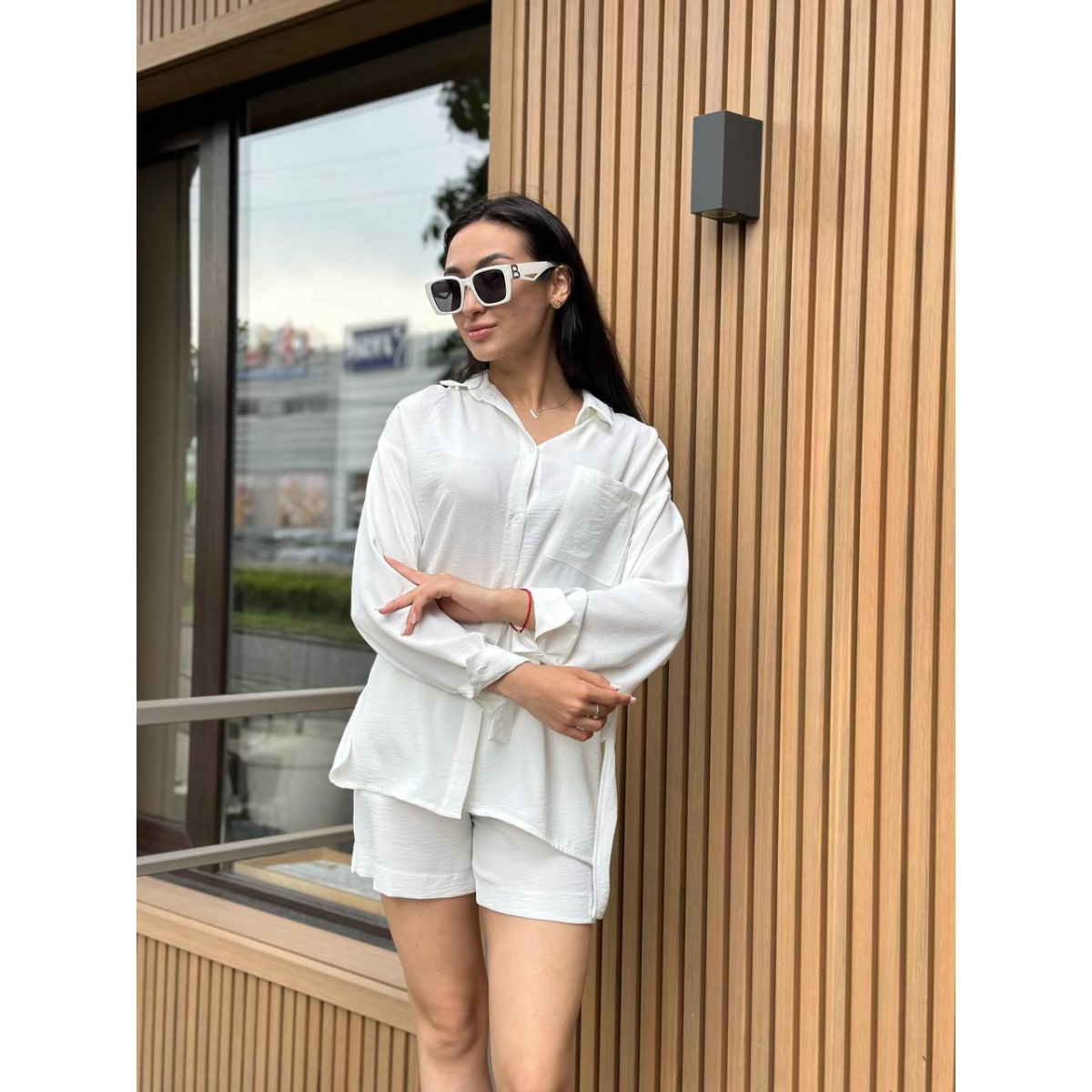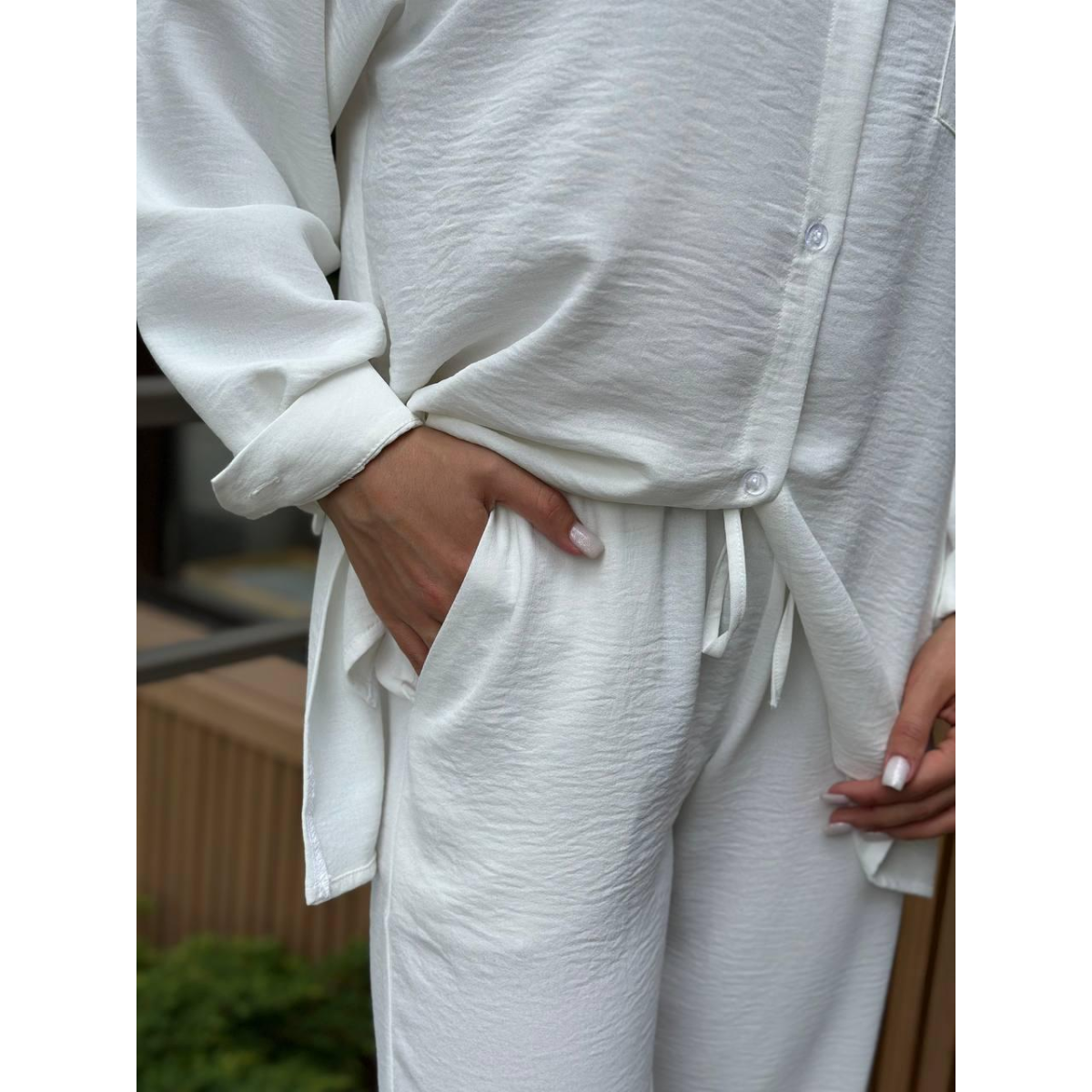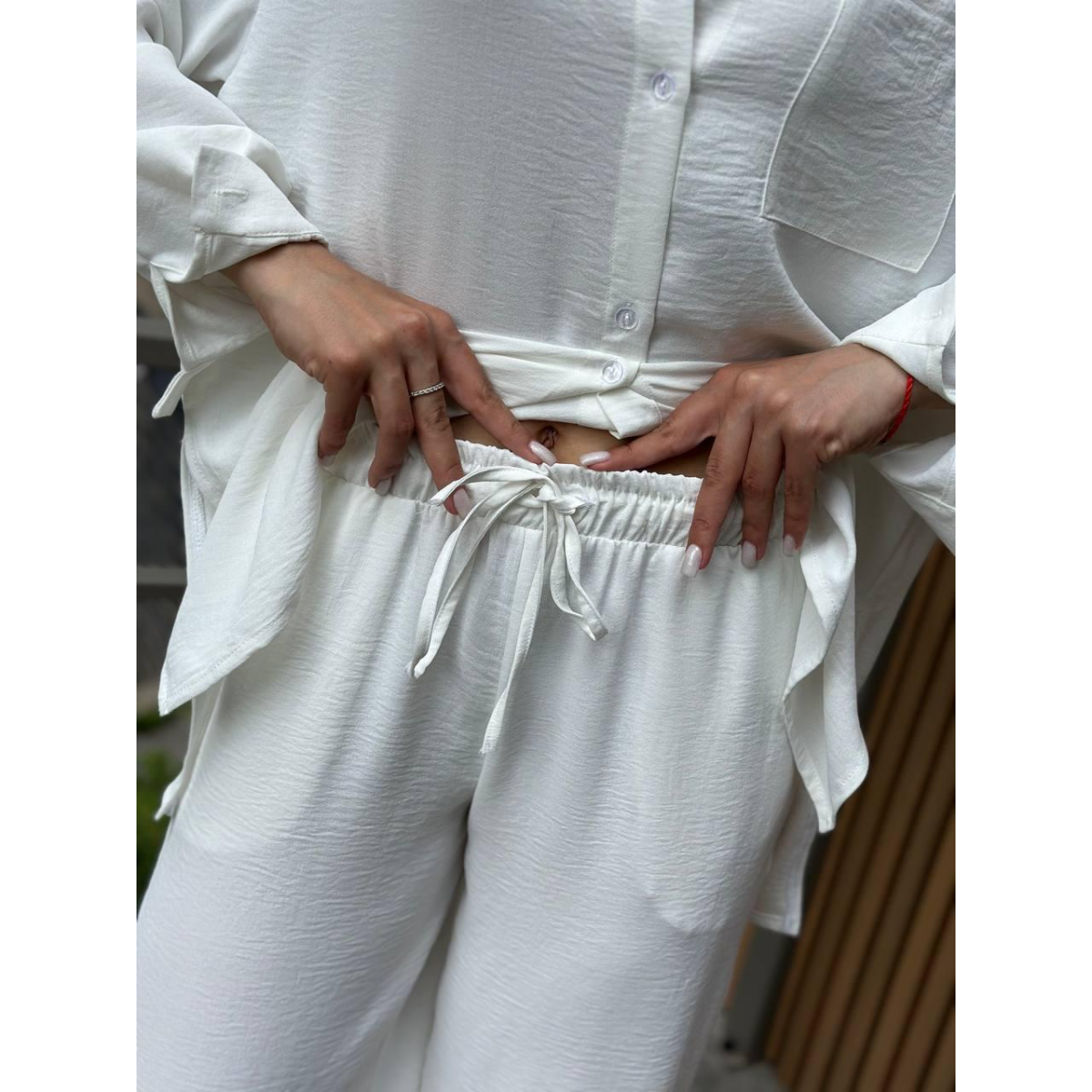 Костюм-трійка жіночий літній з шортами і брюками Молочний, M-L