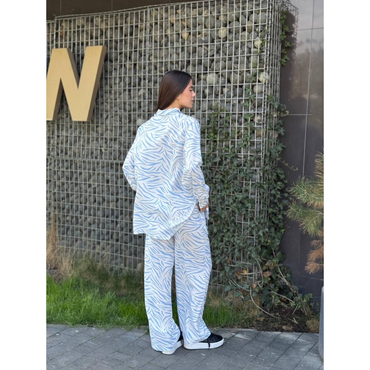 Костюм жіночий літній льон Блакитний, Тварини, XL-XXL