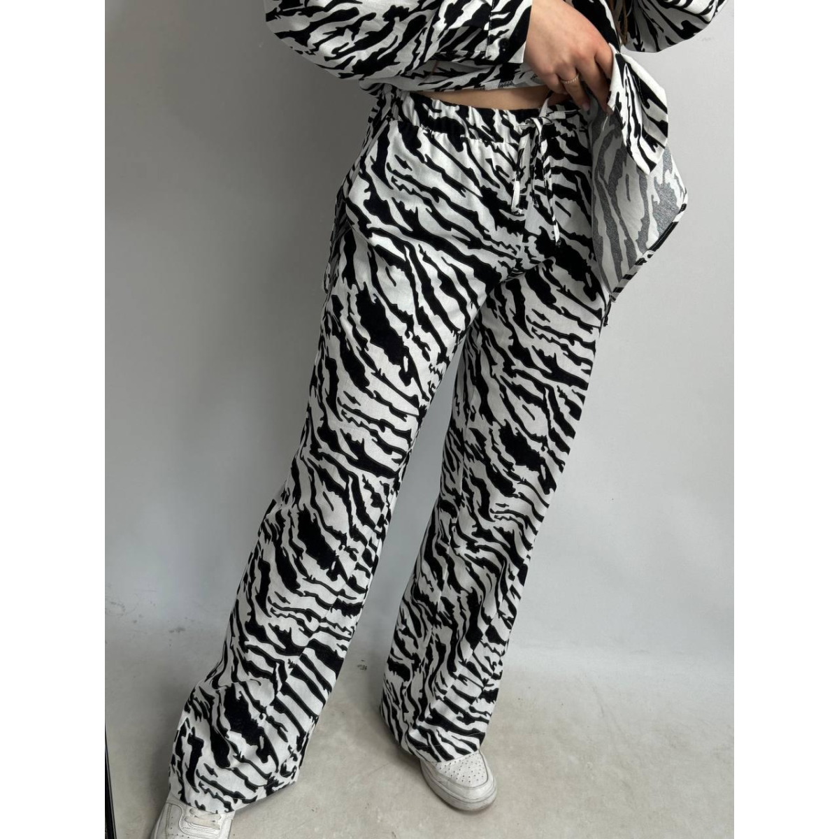 Костюм жіночий літній льон Чорно-білий, Тварини принти, XS-S