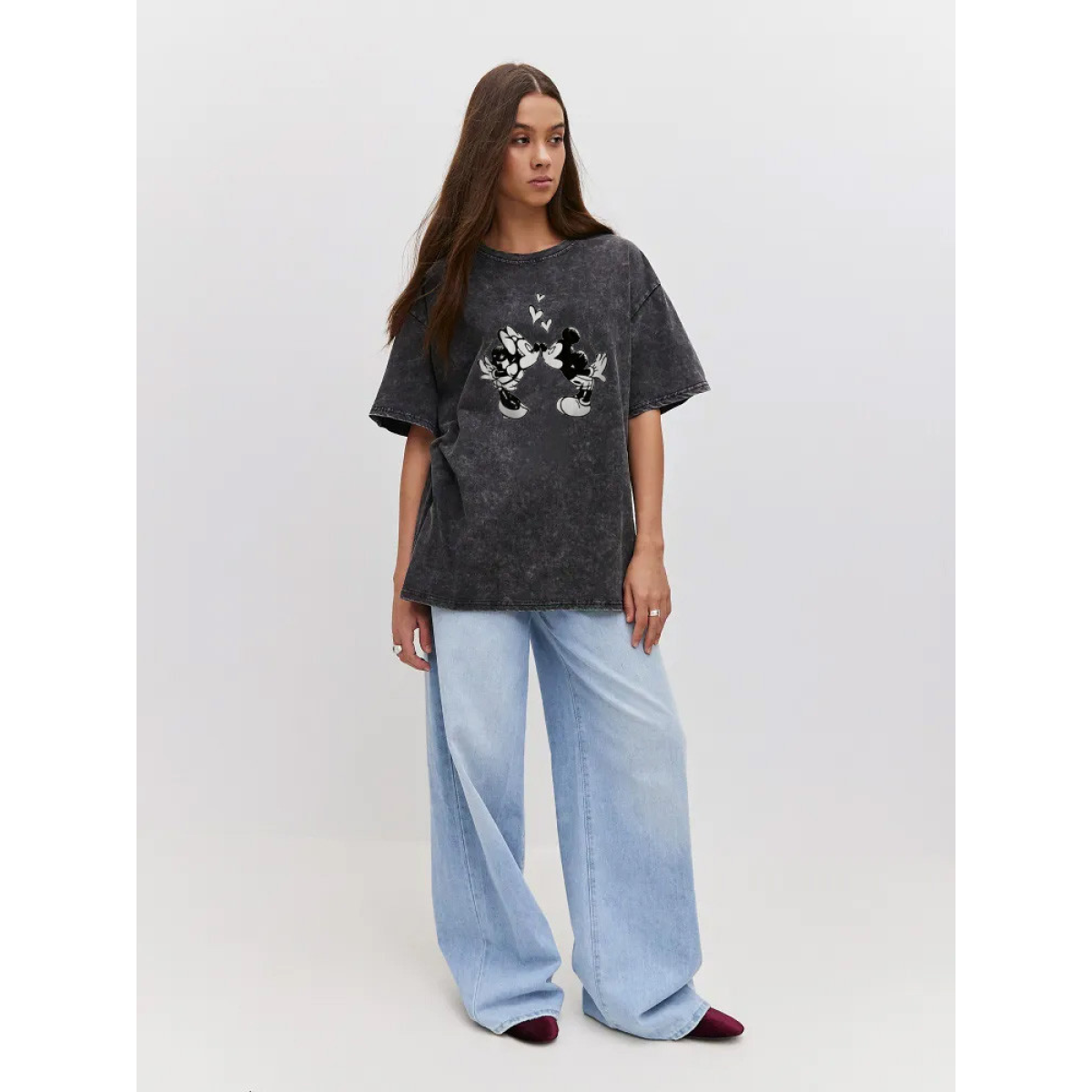 Оверсайз футболка у вінтажному стилі з принтом Черний