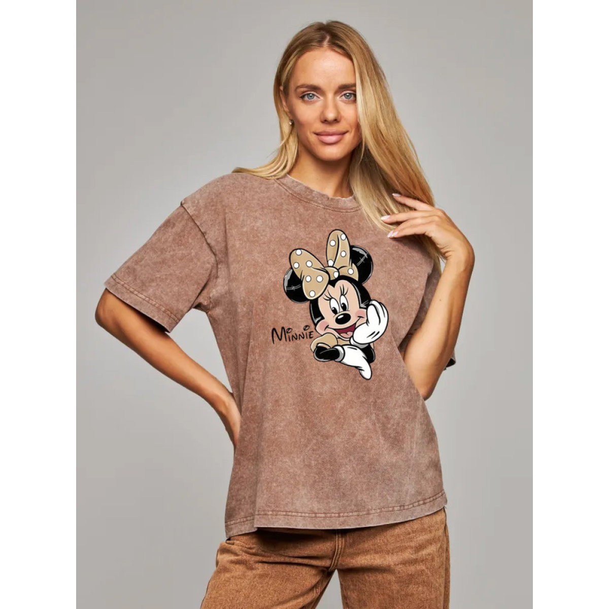 Футболка оверсайз вінтаж із принтом Мінні-бант, Бежевий