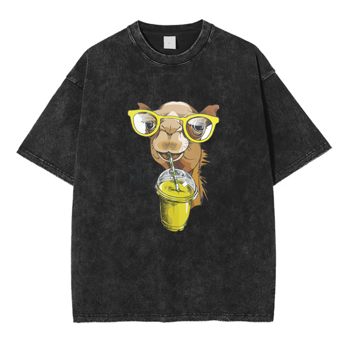 Футболка оверсайз у вінтажному стилі з принтом Верблюд, Чорний