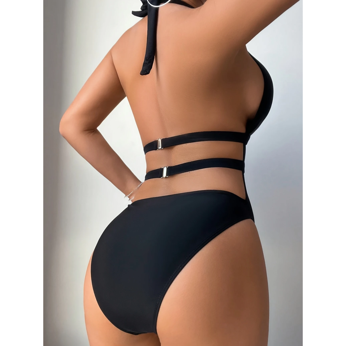 Суцільний купальник із вирізом та сіткою – для пляжу та басейну Модний жіночий купальник – стильне рішення для відпочинку на морі, пляжної вечірки або релаксу біля басейну. Глибокий виріз, сітчасті вставки та високий крій на стегнах візуально витягують силует і створюють ефект “пісочного годинника“. Зав’язка на шиї гарантує зручну посадку, а еластична тканина швидко висихає після купання. Купальник виглядає ефектно як на пляжі, так і на фото. Основні переваги: Жіночий купальник суцільний чорний Модний купальник з глибоким декольте Купальник із сітчастими вставками Купальник для моря, басейну, фотосесії Трендовий купальник 2025 року Купальник із зав’язкою на шиї (halter)