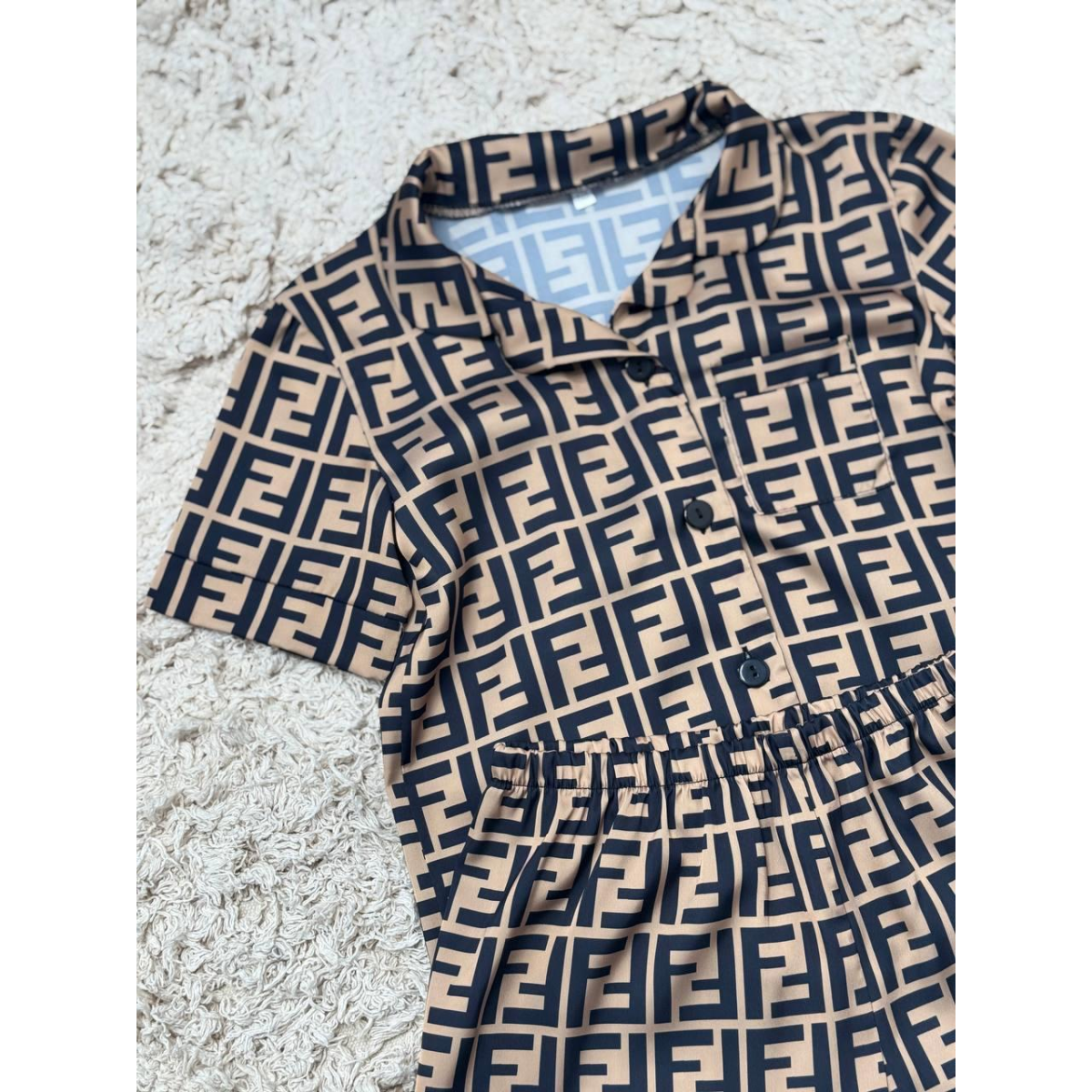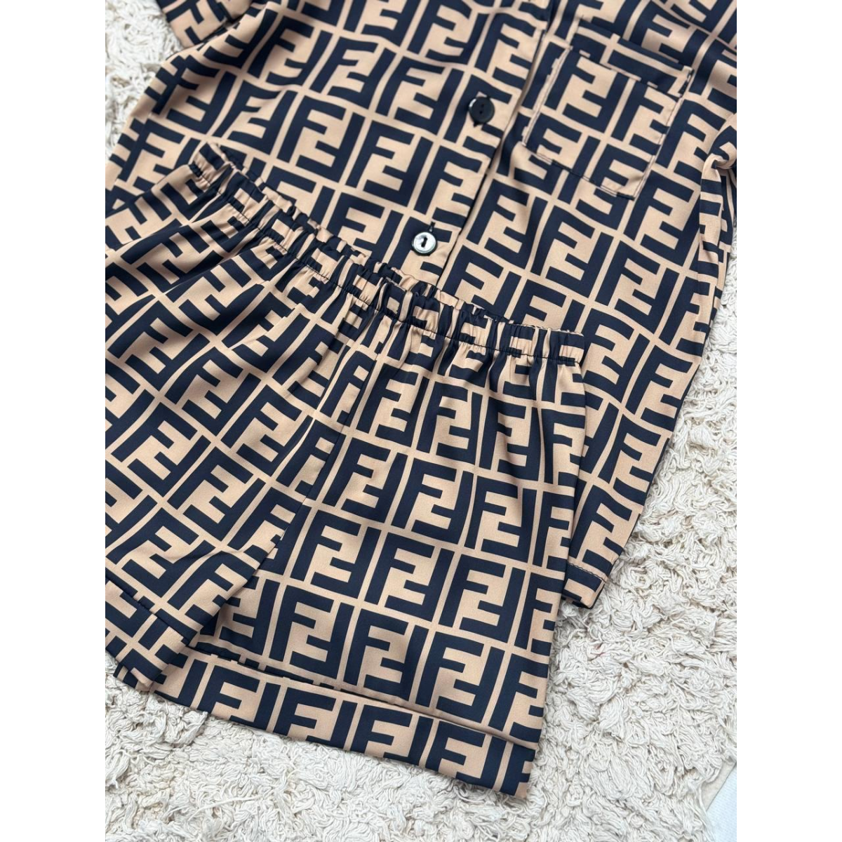 Дитяча піжамка із сатину шорти з сорочкою, Коричневий, р.122-128