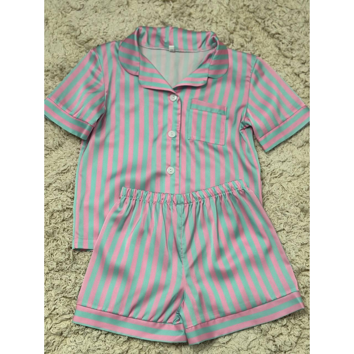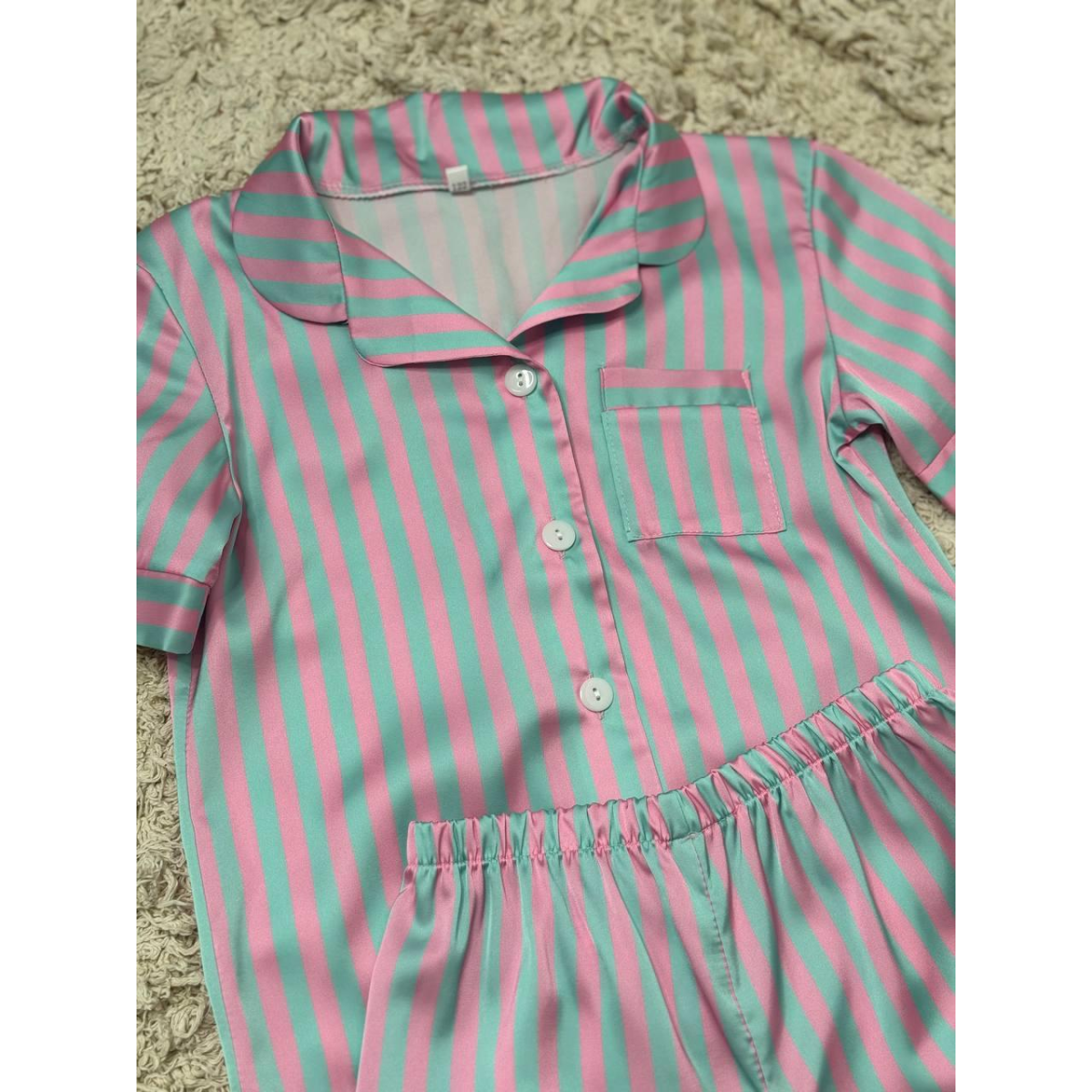 Дитяча піжамка із сатину шорти з сорочкою, Блакитно-рожевий, р.154-158