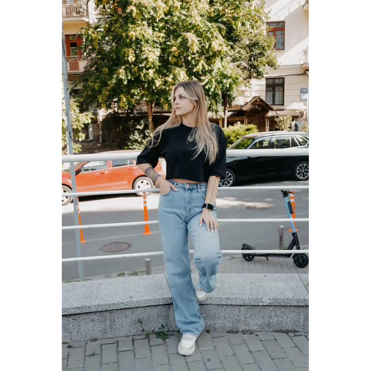 Укорочена футболка з гербом із турецького куліра Підкресліть свою індивідуальність та стиль із нашою вкороченою футболкою, виконаною з високоякісного турецького куліра. Доступна у двох універсальних кольорах - білому та чорному, ця футболка стане ідеальним доповненням до вашого гардеробу, принісши нотку елегантності та комфорту. Турецький кулір - це м“яка та повітропроникна тканина, відома своєю довговічністю та комфортом. Вона забезпечує приємні відчуття на шкірі та підходить для щоденного носіння. Футболка представлена в класичних кольорах - білому та чорному, що робить її універсальною та легко поєднується з будь-якими елементами гардеробу. Довжина футболки 45 см створює модний укорочений силует, який чудово поєднується з високими брюками, спідницями чи шортами, надаючи вашому образу сучасного та свіжого вигляду. Вільний крій та якісні шви забезпечують відмінну посадку та свободу рухів, роблячи цю футболку ідеальною для активного та повсякденного носіння. Відкрийте для себе ідеальне поєднання комфорту та стилю з нашою укороченою футболкою з турецького куліра. Доступна в білому та чорному кольорах, ця футболка стане вашим улюбленим елементом гардеробу, підкреслюючи вашу індивідуальність та почуття стилю. Розміри: 42/44 ОГ 80-95см, ОТ 65-95см 46/48 ОГ 90-110см, ОТ 80-110см