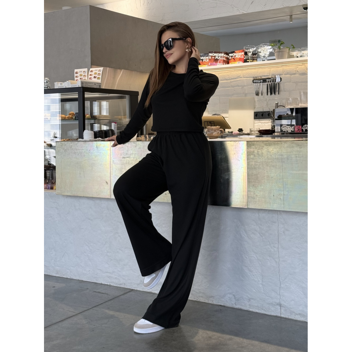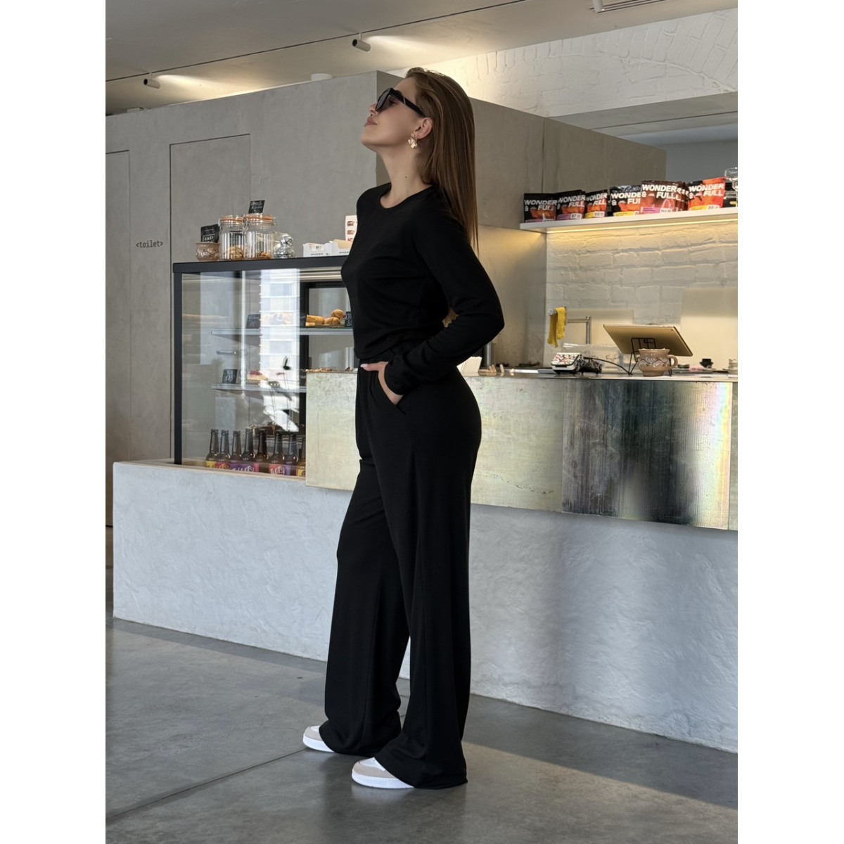 Модний і зручний жіночий костюм з високоякісного рубчика ідеально підійде для активного відпочинку та повсякденного носіння. Легка й еластична тканина не тільки комфортна в носінні, а й дає змогу шкірі дихати. У комплект входить стильний лонгслів з довгим рукавом, який не обтягує тіло, і вільні штани зі зручною посадкою, що створюють розслаблений і сучасний силует.